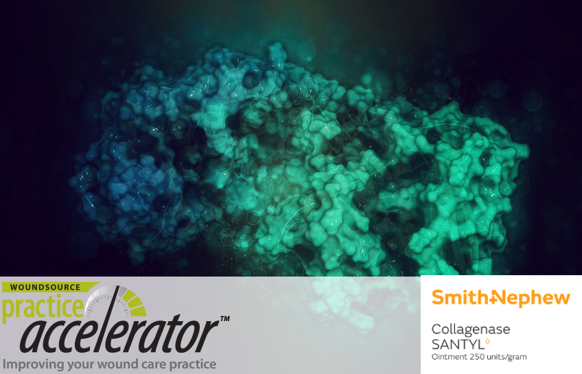 Enzymatic debridement is often used in conjunction with sharp debridement. It is a topical treatment that uses naturally occurring proteolytic enzymes or proteinases, which can aid in the wound repair process. These enzymes remove devitalized tissue by digesting and dissolving the non-viable tissue and thus chemically liquefying non-viable tissues within the wound bed. Proteinase activity in chronic wounds debrides the wound, and it also facilitates cell migration necessary for epithelialization, further contributing to the healing process.1 This process helps the wound move from the inflammatory phase of healing to the proliferative phase.