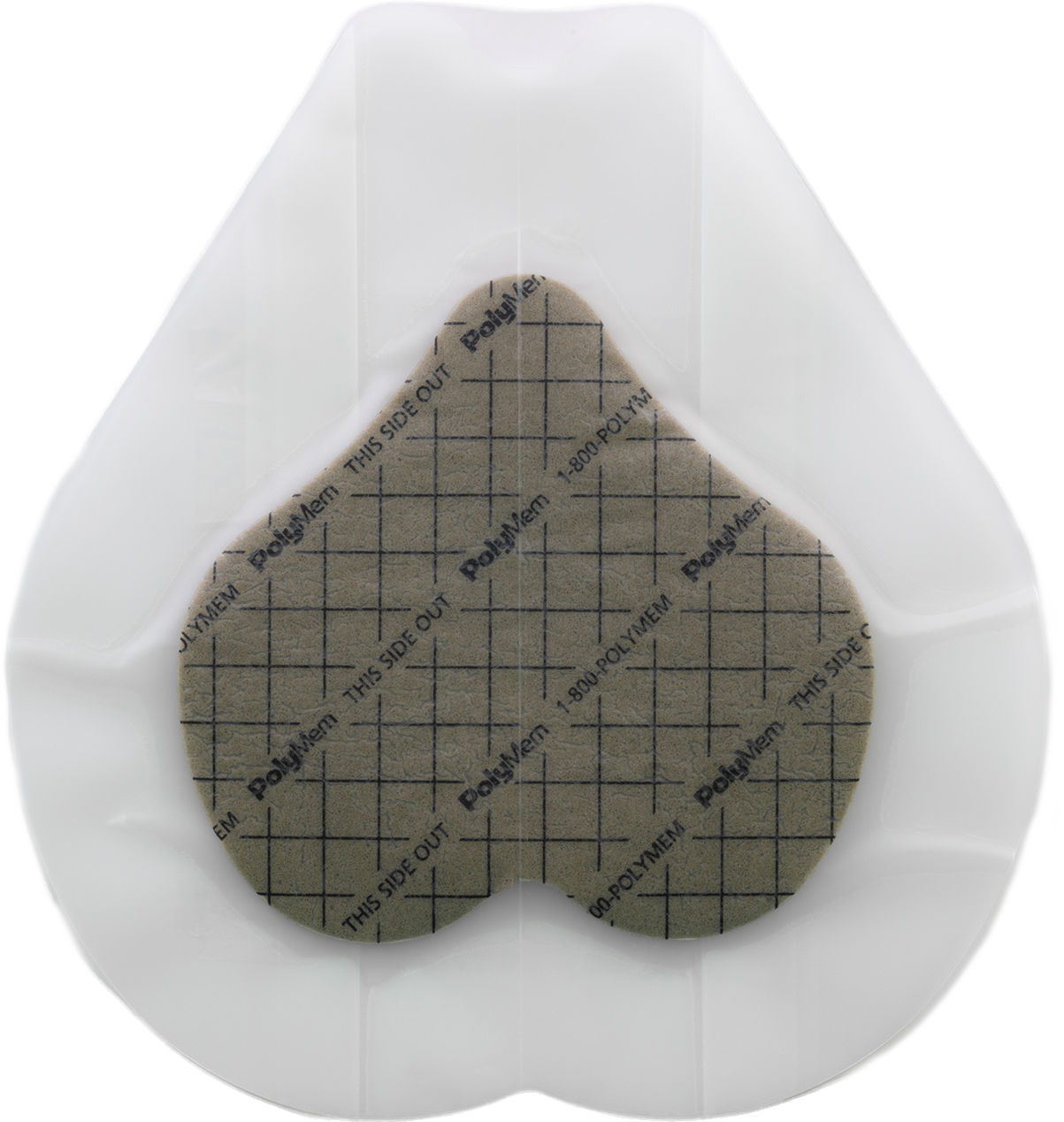 Shapes by PolyMem® Sacral Silver Dressings are antimicrobial, sacral-wound-shaped, water-resistant, multifunctional interactive dressing with a thin-film adhesive border. Designed to help decrease pain, odor and inflammation; continuously cleanse; and protect wounds while promoting quick healing.