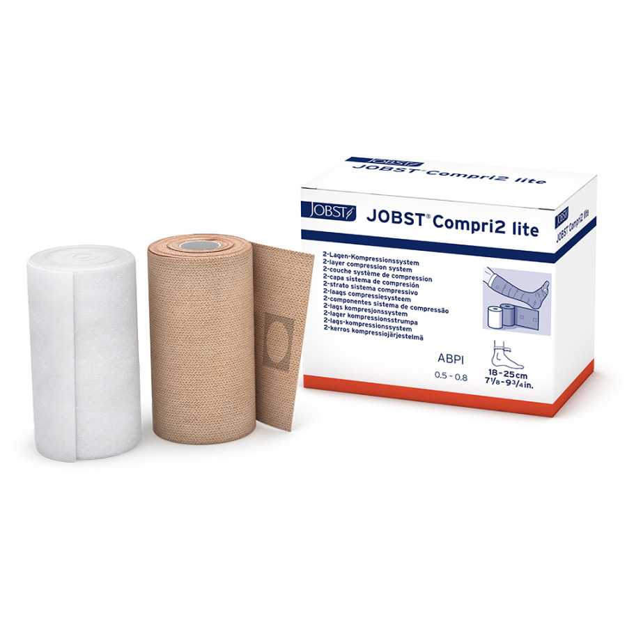 CoFlex® TLC, Two Layer Compression provides a two-step level of comfort and healing. Layer 1 is a soft foam roll with odor- and itch-control properties. Layer 2 is a short stretch compression bandage not made with natural rubber latex that sticks to itself, with visual indicators to aid in the application.