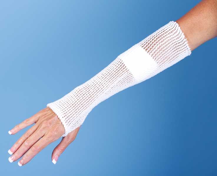 SpandaGrip™ is a tubular elastic support bandage that stays in place without tape, clips or pins. Provides even compression and support. Not made with natural rubber latex.