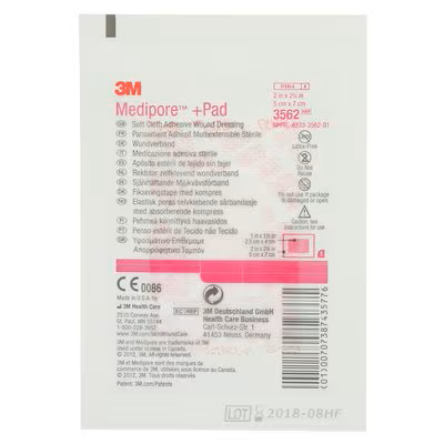 Composite dressings are wound covers that combine physically distinct components into a single product to provide multiple functions such as a bacterial barrier, absorption, and adhesion. Generally, composites are composed of multiple layers and incorporate a semi- or nonadherent pad that covers the wound. They may also include an adhesive border of nonwoven fabric tape or transparent film. Composite dressings can function as either a primary or a secondary dressing on a wide variety of wounds and may be used with topical medications.