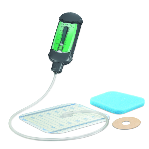 The 3M™ Snap™ Therapy System is indicated for patients who would benefit from wound management via the application of negative pressure, particularly as the device may promote wound healing through the removal of excess exudates, infectious material and tissue debris. The SNAP™ Therapy System is indicated for removal of small amounts of exudate from chronic, acute, traumatic, subacute and dehisced wounds, ulcers (such as diabetic, venous, or pressure), surgically closed incisions, flaps, and grafts.