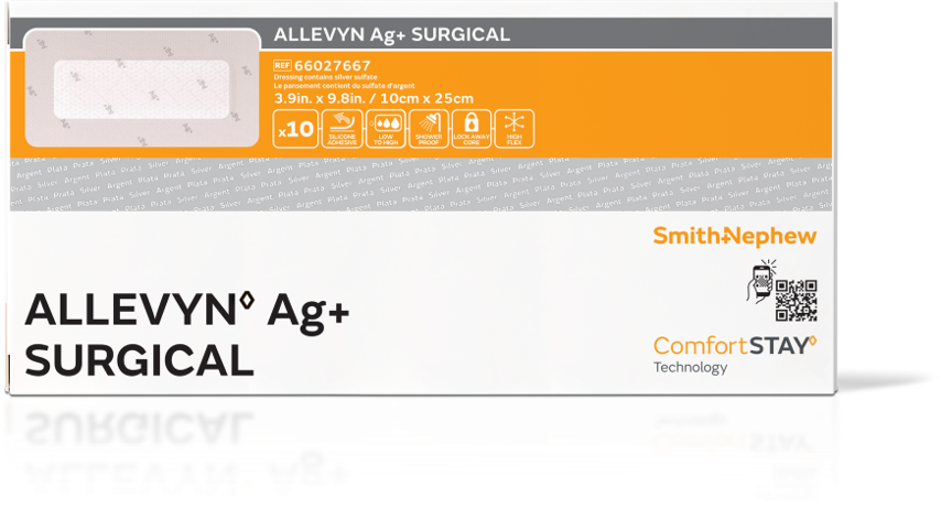 ALLEVYN* Ag+ SURGICAL Dressings are for healthcare professional use. The application and removal of the dressing should be conducted by a healthcare professional, dependent upon clinical assessment and local protocols. Should a dressing require changing, please contact a healthcare professional.