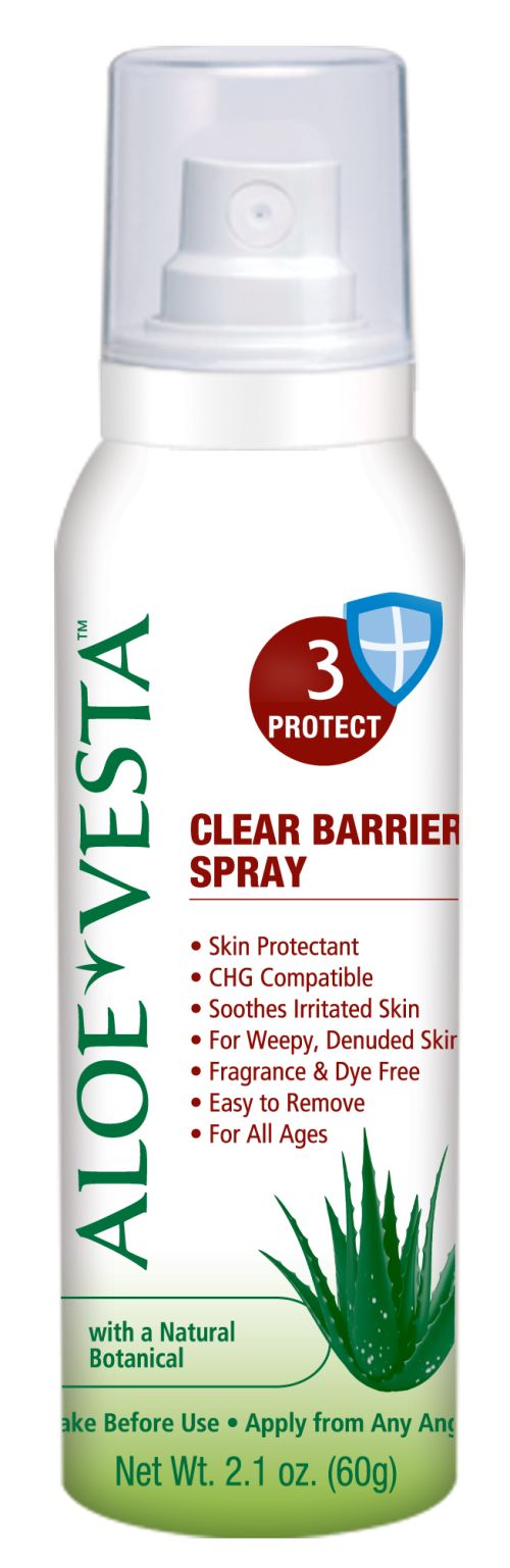Aloe Vesta® Clear Barrier Spray is an occlusive barrier that repels moisture and protects against irritants in feces and urine. Sprays from all angles for all-over protection without the need for rubbing.