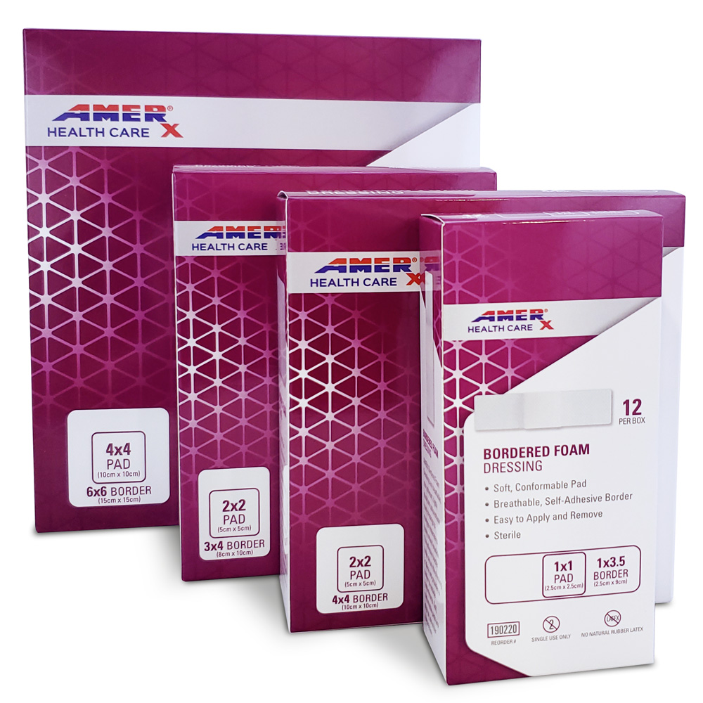 AMERX® Bordered Foam Dressings feature sterile, high performance polyurethane foam that is able to absorb large amounts of wound fluid for complete exudate management. Breathable, self-adhesive border provides a barrier to outside contaminants.