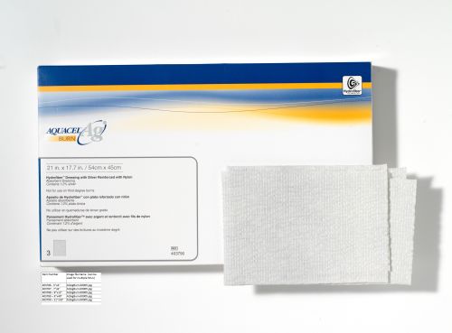 Before applying the dressing, cleanse the wound area with an appropriate wound cleanser. AQUACEL® Ag Burn should overlap at least 2cm (1") onto the skin surrounding the burn or donor site or adjacent silver hydrofiber® dressing reinforced with nylon. AQUACEL® Ag Burn may be covered, if desired, with a secondary dressing such as a sterile absorbent pad, then secured appropriately (e.g., with a retention bandage). If a secondary dressing is used, remove periodically and inspect the AQUACEL® Ag Burn dressing while it remains in place on the wound. All dressings should be inspected frequently. Dressings should be changed as clinically indicated (e.g., saturation, leakage or increased discomfort). For partial-thickness (second-degree) burns and donor sites, AQUACEL® Ag Burn may be left in place for up to 21 days or until clinically indicated. If the wound is infected, frequent inspection of the wound may be necessary. If necessary, lightly spray to moisten the dressing over the joint with sterile water or sterile saline to aid exercise/mobilization.