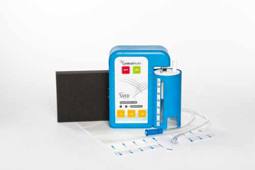 The Cardinal Health™ NPWT SVED® Device provides negative pressure wound therapy when used with the Cardinal Health™ NPWT dressings to remove fluid, irrigation solutions, and infectious materials from the wound. Can be used with Cardinal Health™ Simultaneous Irrigation™ Technology.