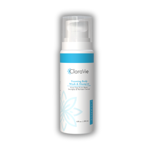 ClaraVie Foaming Body Wash & Shampoo is a 3-in-1, thick-foaming, rinse-free body wash, shampoo and perineal cleanser enriched with aloe vera to sooth and moisturize fragile skin.