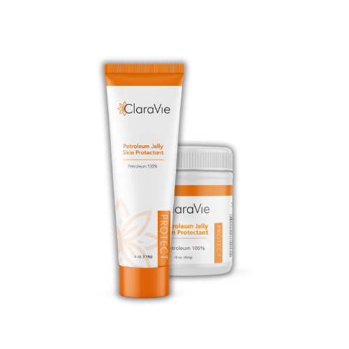ClaraVie Petroleum Jelly Skin Protectant is a skin protectant that temporarily protects minor cuts, scrapes and burns. It temporarily protects and relieves chapped, chafed or cracked skin and lips, and helps protect from the drying effects of wind and cold weather.