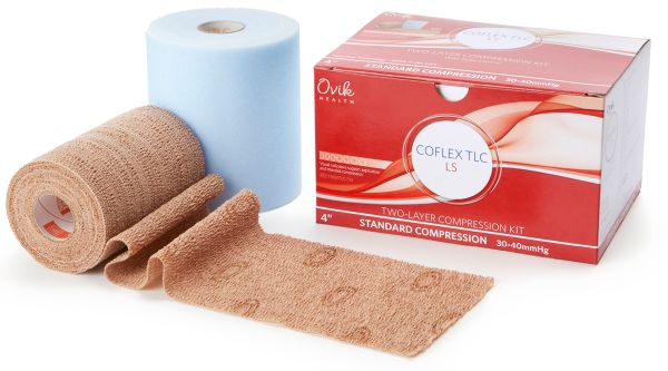 CoFlex™ TLC Long Stretch with visual indicators is a two-step compression system not made with natural rubber latex. Delivers continuous restorative compression when treating venous leg ulcers. Available in LITE and STANDARD.