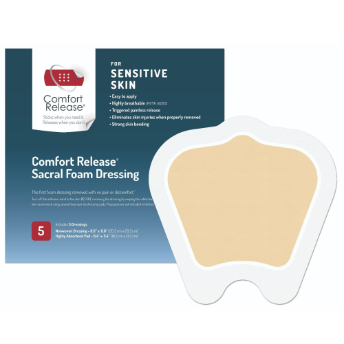 Comfort Release® Bordered Foam and Sacral Foam Dressings are made with a medical grade acrylic adhesive but can be used as a replacement for silicone adhesive dressings. Constructed with a plant-based polymer that allows for more secure adhesion to the skin but releases from the skin like a soft silicone adhesive (when removed as directed) painlessly and trauma-free.