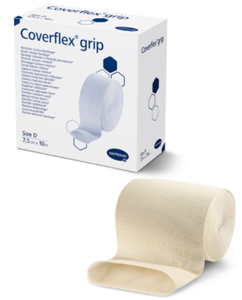 Coverflex® grip Tubular Bandage is commonly used for edema reduction, post-cast support, to secure dressings, and to protect sensitive skin from adhesives or trauma.