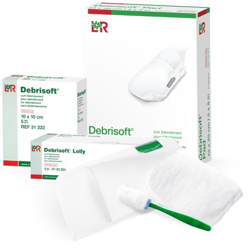 Debrisoft® Pad and Debrisoft® Lolly are indicated for rapid, atraumatic wound bed preparation including removal of necrosis, slough, biofilm, debris, and keratosis from wounds and surrounding skin. The handle of Debrisoft® Lolly allows debridement of undermined and hard-to-reach areas.
