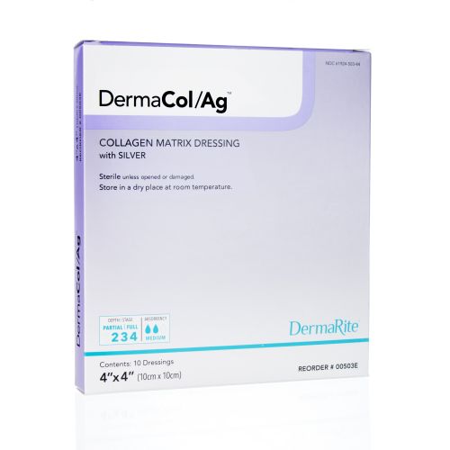 DermaCol™ Ag Collagen Matrix Dressing with Silver is intended for use on partial- and full-thickness wounds including pressure injuries, diabetic ulcers, mixed vascular ulcers, venous ulcers, donor and graft sites, traumatic wounds healing by secondary intention, dehisced surgical wounds, and first- and second-degree burns.
