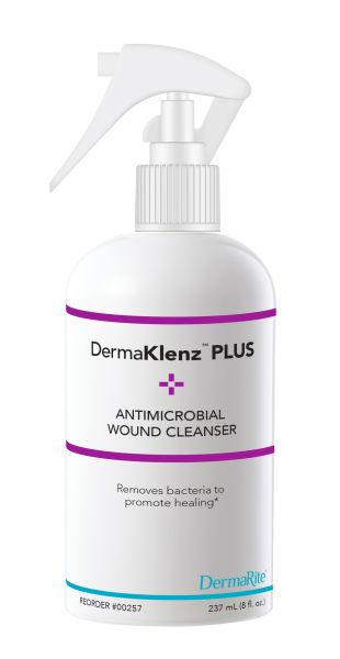 DermaKlenz™ PLUS Antimicrobial Wound Cleanser is for hygienic management of wounds such as stage I-IV pressure injuries, partial- and full-thickness wounds, diabetic foot and leg ulcers, post-surgical wounds, first- and second-degree burns, grafted and donor sites, and minor irritations of the skin.