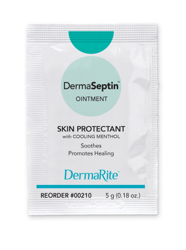 DermaSeptin™ Ointment Skin Protectant with zinc oxide and calamine provides a barrier to prevent irritation from moisture. Dries and manages weeping skin. Contains menthol to soothe minor skin irritation.