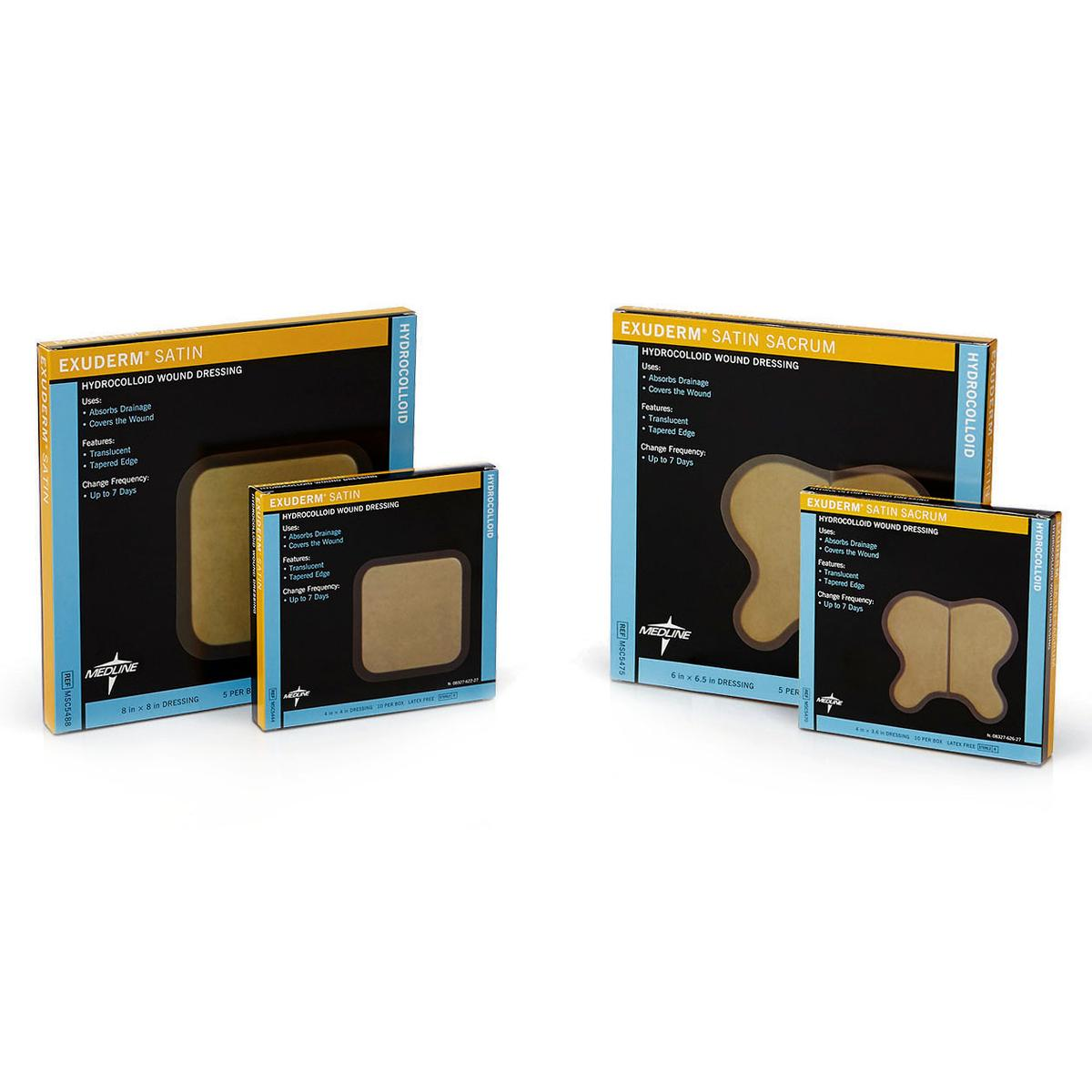 Exuderm® Satin is a hydrocolloid wound dressing designed with a smooth, low friction backing and tapered edges to prevent roll-up.