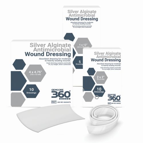 GEMCORE360°™ Silver Alginate Wound Dressing is indicated for moderate to heavily exuding partial- to full-thickness wounds such as: post-operative wounds, trauma wounds (dermal lesions, trauma injuries or incisions), leg ulcers, pressure injuries, diabetic ulcers, graft and donor sites, post-operative surgical wounds and first- and second-degree burns. GEMCORE360˚ Silver Alginate Antimicrobial Wound Dressing is indicated for external use only and can also be used under compression bandages. As GEMCORE360°™ Silver Alginate Wound Dressing contains alginate, it may assist in supporting the control of minor bleeding in superficial wounds.