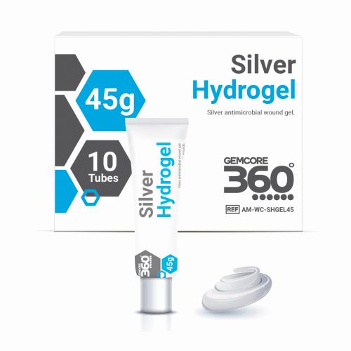 GEMCORE360°™ Silver Hydrogel Dressing is an opaque, amorphous hydrogel that combines the clinical benefits of the standard hydrogel along with silver (Ag ions), a broad spectrum antimicrobial with a fast kill rate. Shown to maintain a high level of antimicrobial effectiveness for up to three days.