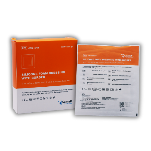 Gentell Silicone Foam Bordered Dressing is a primary or secondary wound dressing for chronic and acute, partial- and full-thickness wounds including superficial wounds.