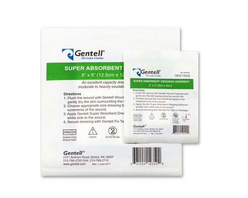 Gentell Super Absorbent Dressing Adherent is for use on moderate to heavy exudating wounds.