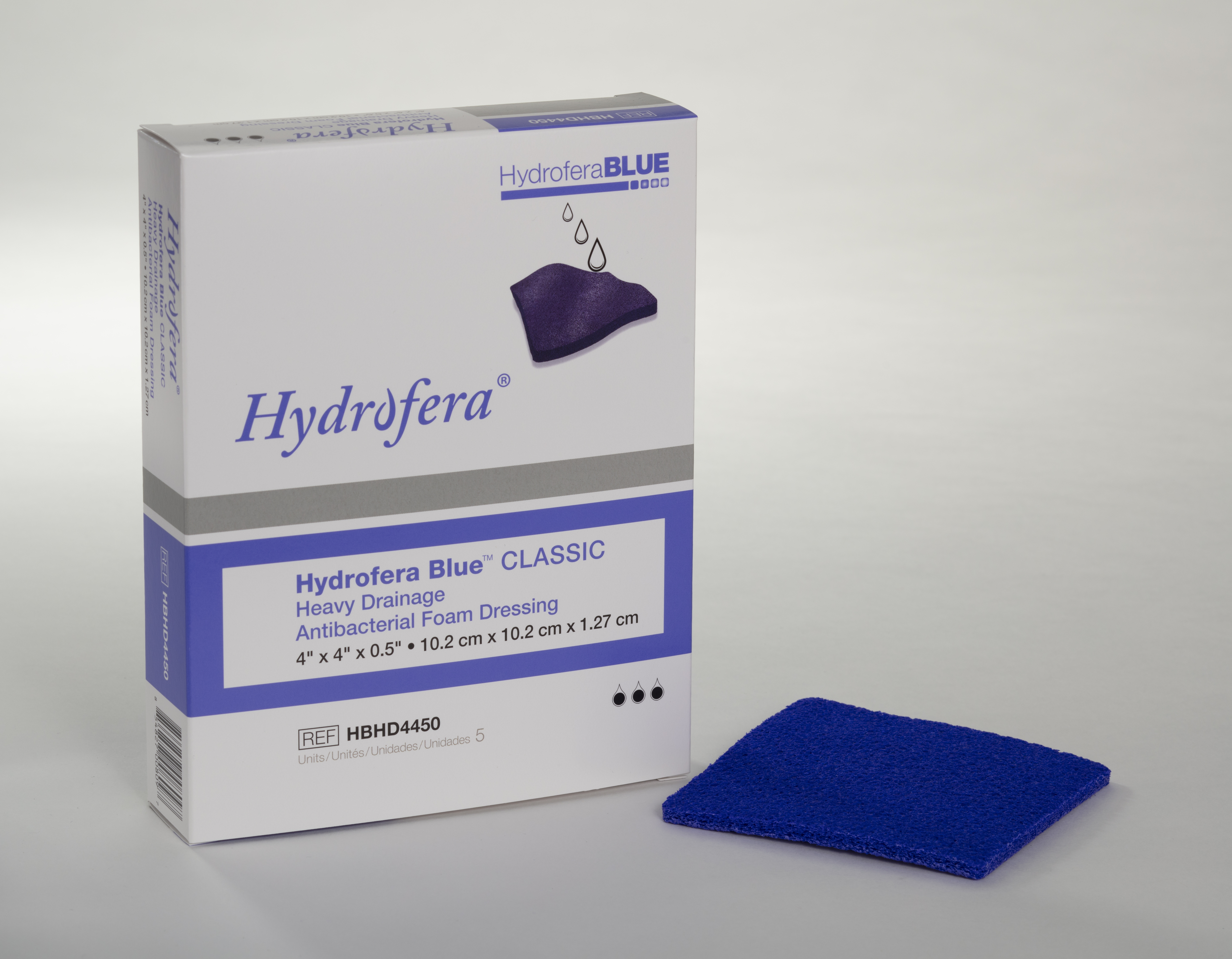 Hydrofera Blue CLASSIC® Heavy Drainage Dressings offer a thicker profile (absorptive PVA antibacterial foam) where the need to manage bioburden and moderate to excessive exudate is always a priority.