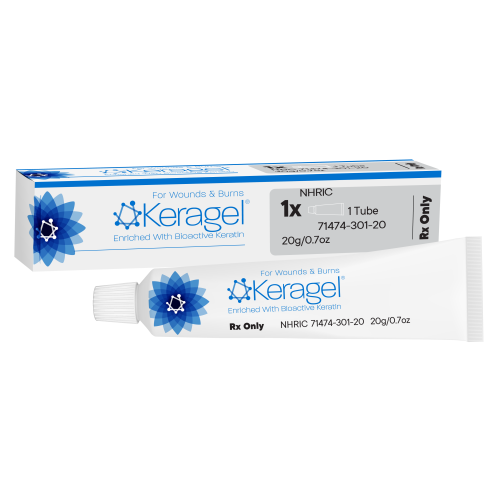 keragel® is a thick hydrogel rich in keratin protein that delivers Replicine™ Functional Keratin® to the wound while maintaining a moisture rich environment.