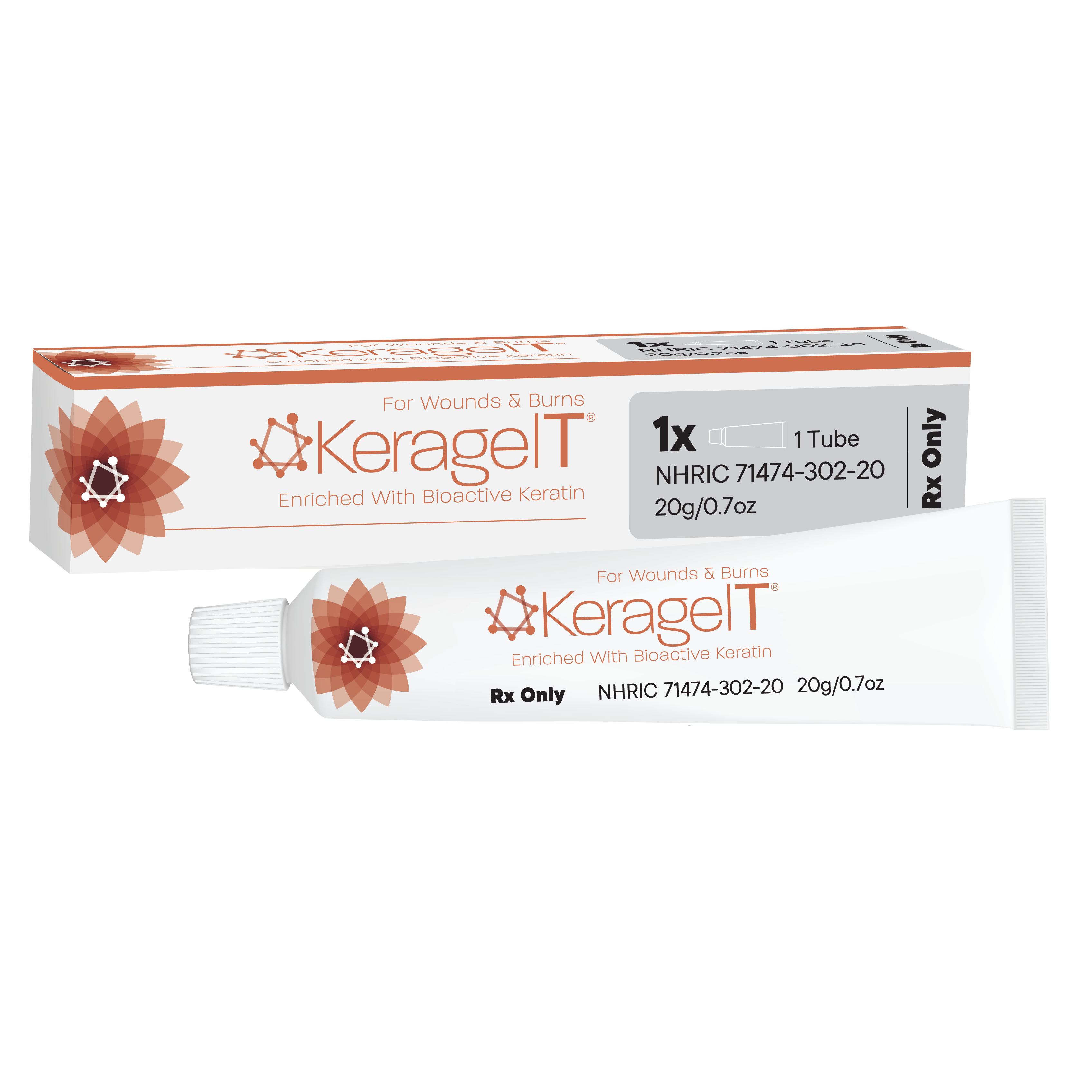 Cleanse and debride the wound in accordance with normal procedures. Ensure the skin surrounding the wound is dry. The tube is opened using the piercer cap to break the nozzle seal. To ensure sterility, sanitize the piercer cap before using. Apply a 3mm to 6mm (1/8" to 1/4") layer of keragelT® to cover the entire wound surface. Cover with an appropriate secondary dressing if needed.