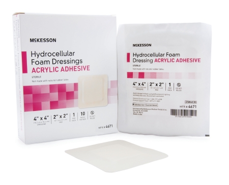McKesson Hydrocellular Foam Dressing with Acrylic Adhesive is a sterile primary or secondary dressing for wounds with moderate to heavy exudate. Skin-friendly acrylic adhesive helps ensure dressing remains secure.