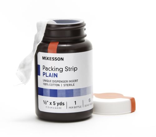 McKesson Wound Packing Strips can be used as packing for open or infected wounds. Made of 100% cotton, ravel-resistant gauze designed to resist linting or fraying. Available in plain and iodoform.