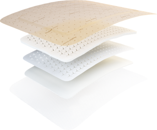 Mepilex® Border Flex is a five-layer bordered foam dressing with proprietary Flex Technology to enable movement in every direction, reducing skin stress, increasing comfort and keeping the dressing in place. Absorbs, channels and traps exudate and allows for tracking progress.