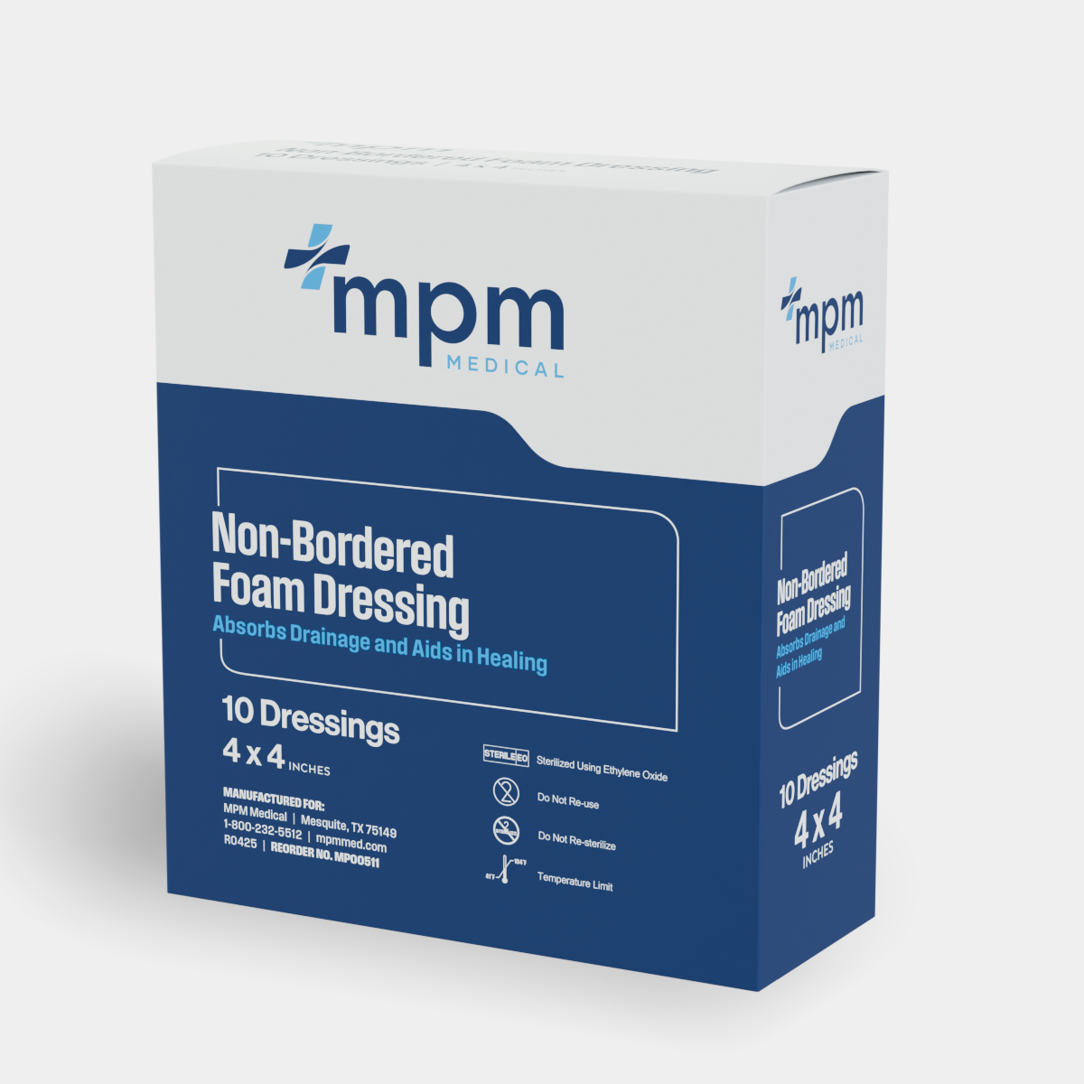 MPM Medical Foam Dressing is indicated for use on chronic and acute, moderately to heavily exudating, partial- and full-thickness wounds, including superficial wounds, second-degree burns and pressure injuries (stages 2–4).