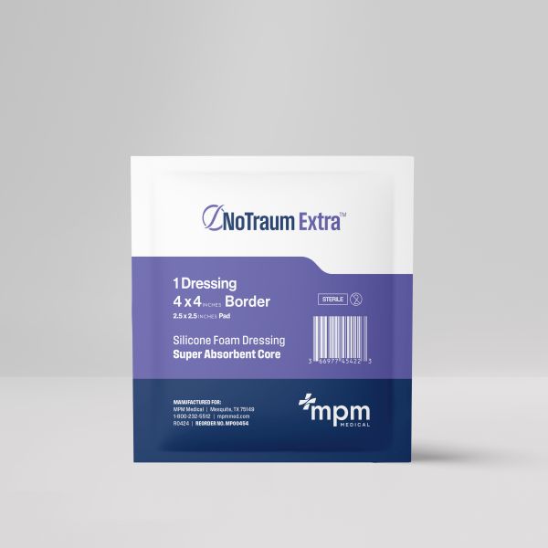 NoTraum Extra™ provides pain-free application with easy removal. Its gentle silicone layer protects wounds and skin, while the waterproof top layer and foam absorb fluid, promoting healing and comfort.