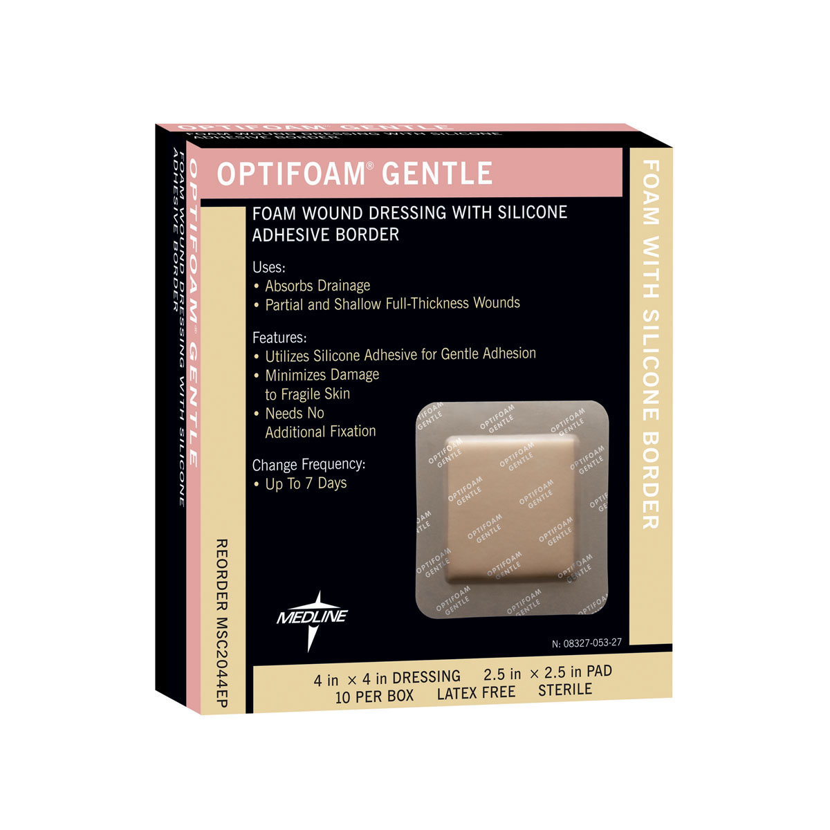 Optifoam® Gentle Ag foam dressing has a silicone adhesive border and waterproof backing. Features broad-spectrum, controlled release ionic silver.