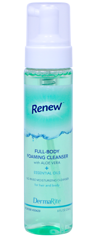 Renew™ Full-Body Foaming Cleanser is intended for use as a rinse-free or rinse-off body wash, shampoo, and perineal cleanser.