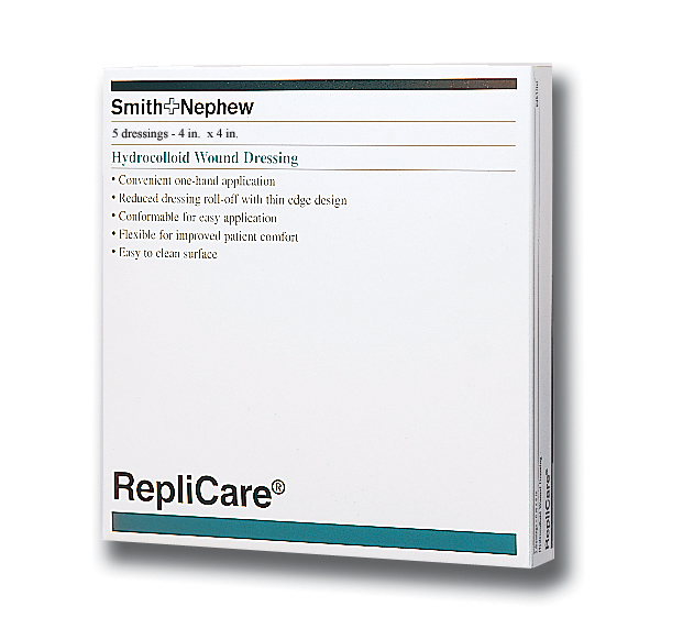 REPLICARE® Hydrocolloid Dressing combines absorbency with the advantages of a film dressing. Balance of adhesion and elasticity promotes excellent adherence over joints. Beveled edges reduce leakage.