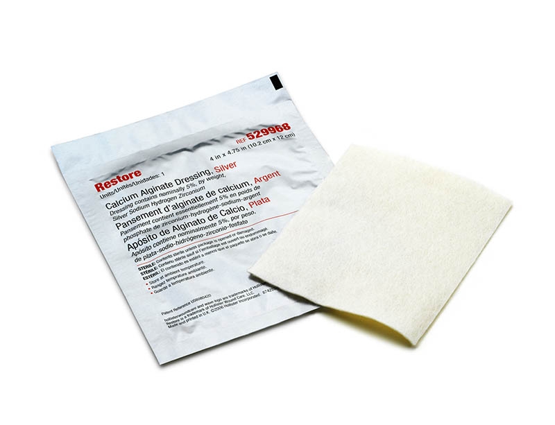 Restore® Calcium Alginate Dressing with Silver's sustained antimicrobial action of ionic silver is activated by contact with exudate. Highly absorbent and creates a conformable gel, aiding easy removal.