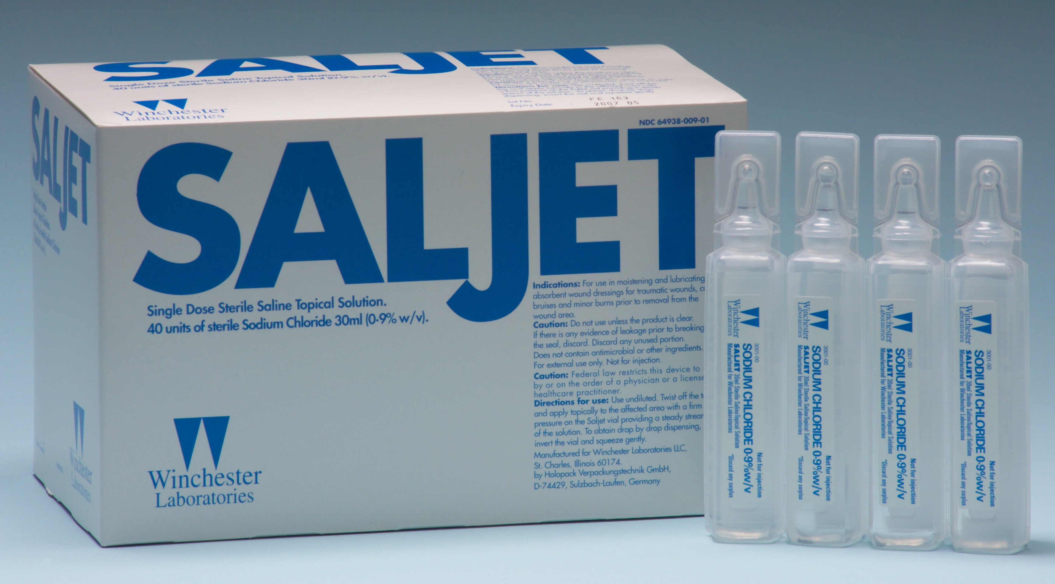 Saljet® is a unit dose 30ml of topical sterile saline designed for those occasions when all that the clinical personnel require is a small volume of saline for a dressing change.