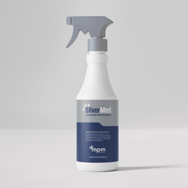 SilverMed™ Antimicrobial Wound Cleanser is a no-rinse, gentle formula that releases silver ions for sustained antimicrobial protection. It features a trigger spray valve for misting or stream spray coverage.