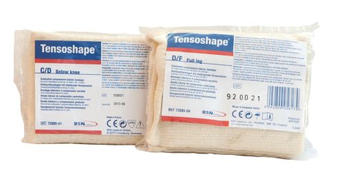 Tensoshape® is an elastic tubular bandage suitable for light support. Anatomical design provides graduated compression, which promotes improved blood flow and lymphatic return. Both full leg and below-the-knee bandages are available in a variety of sizes.