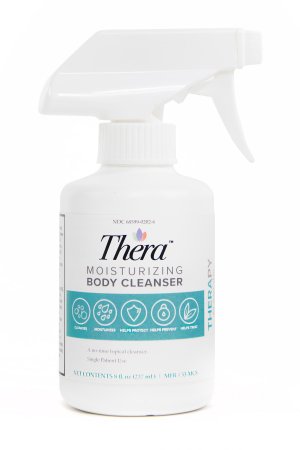 Thera® Moisturizing Body Cleanser is a mild, no-rinse lotion cleanser with 1.75% dimethicone that cleanses, moisturizes, nourishes, and helps protect the skin.