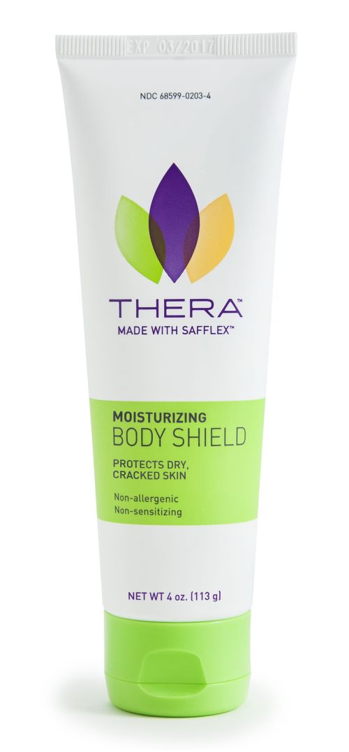 Thera® Moisturizing Body Shield protects dry, cracked skin and protects against excess moisture and minor skin irritations.