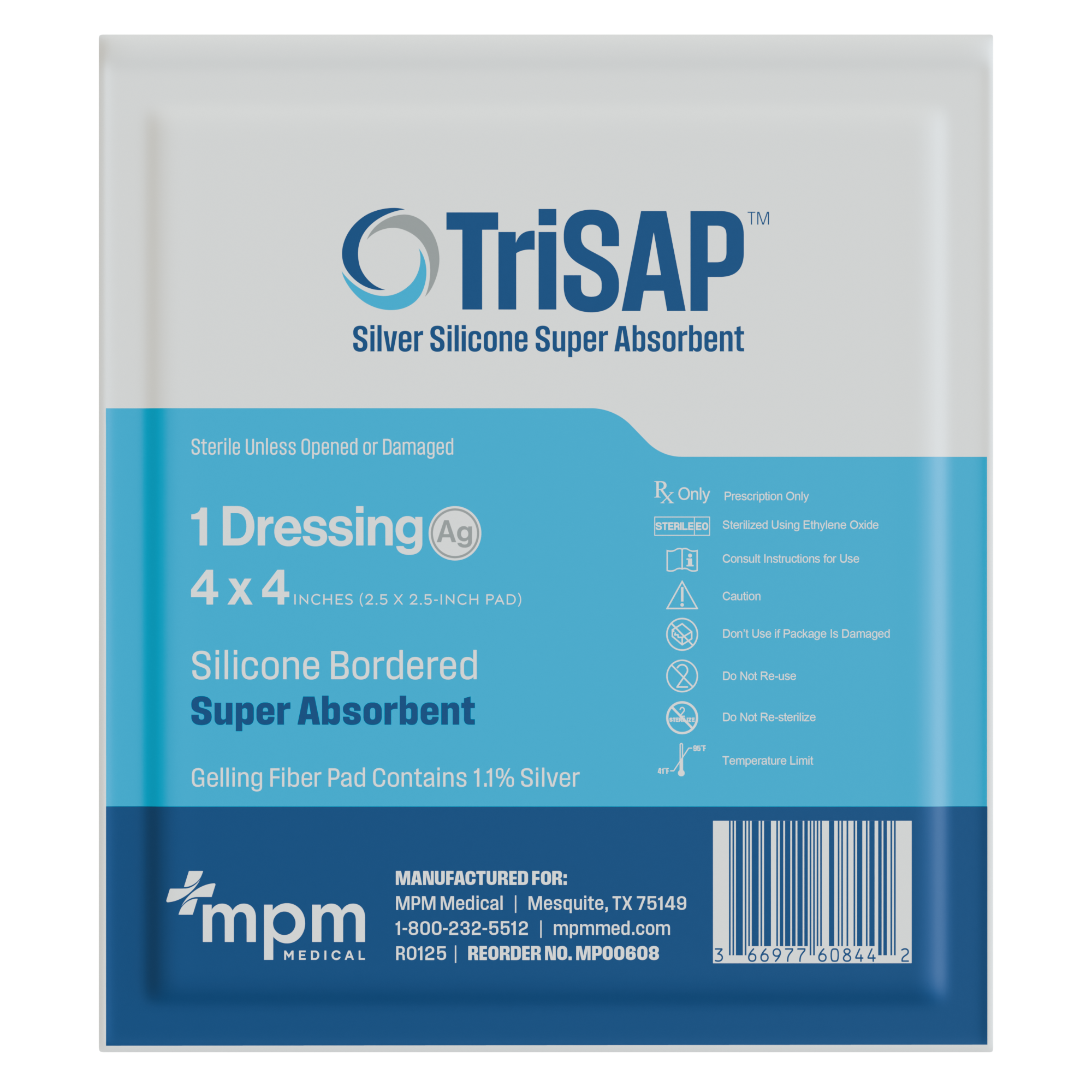 TriSAP™: Silver, Silicone & Super Absorbent power in one dressing. Locks in bacteria, manages exudate, and protects the periwound—all with a skin-friendly border, ideal even under compression.