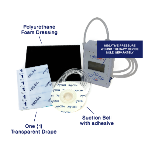 Vakito® NPWT Dressing Kits are indicated for the management of chronic and acute wounds that have not responded to conservative advanced procedures.