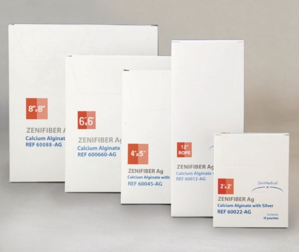 ZeniFIBER-Ag is a silver calcium alginate dressing used to absorb drainage, reduce odor, reduce bacteria and pack deep or tunneling wounds. Becomes a fibrous gel on contact with wound exudate. 7-day antibacterial effectiveness.