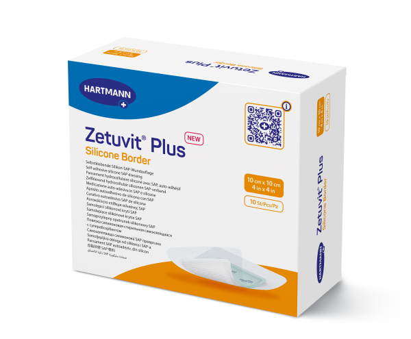 Zetuvit® Plus Silicone Border is suitable for the treatment of moderately to heavily exuding wounds. Offers excellent patient comfort and satisfaction, a superabsorbent core for fast absorption, odor control, and retention of exudate even under compression.